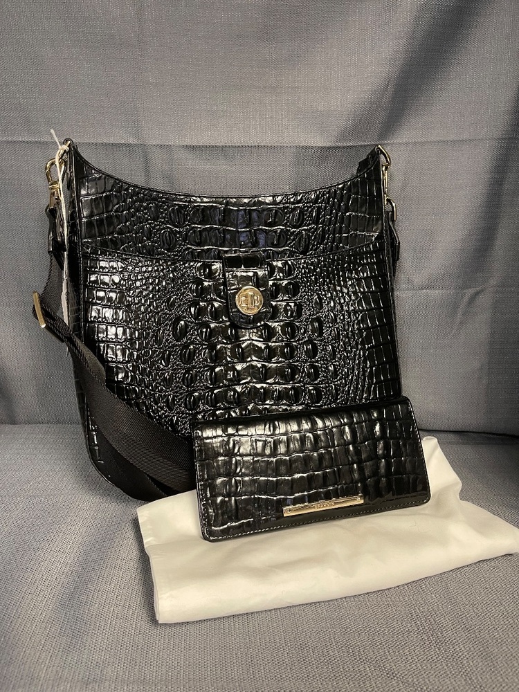 Luxury Handbag Brahmin Leia Black Crossbody comes with dust bag and wallet