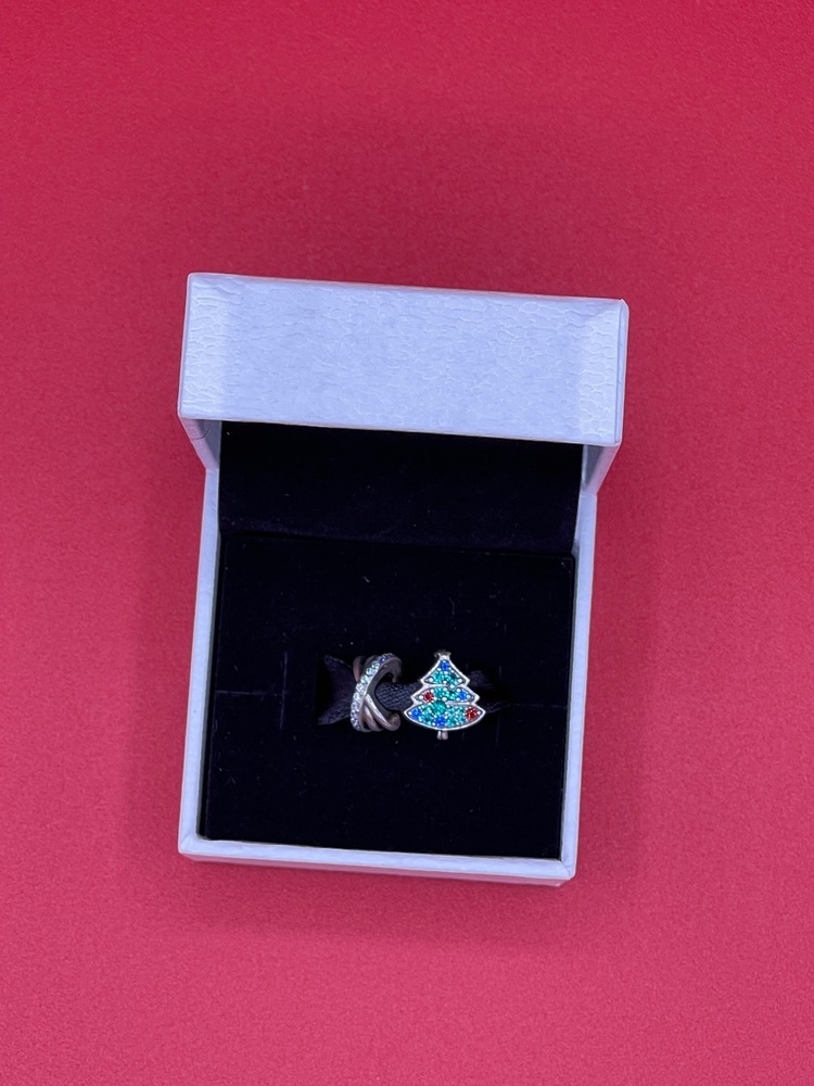 Perfect addition to any holiday outfit OR the most beautiful gift! Gemstones are not guaranteed. Silver 0.925% 1.90gms Charm Christmas Tree & Crossover Charms.