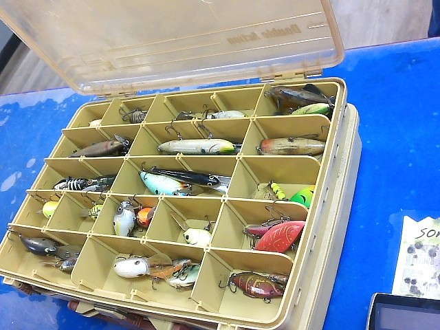 Plano double action tackle box w/tackle.