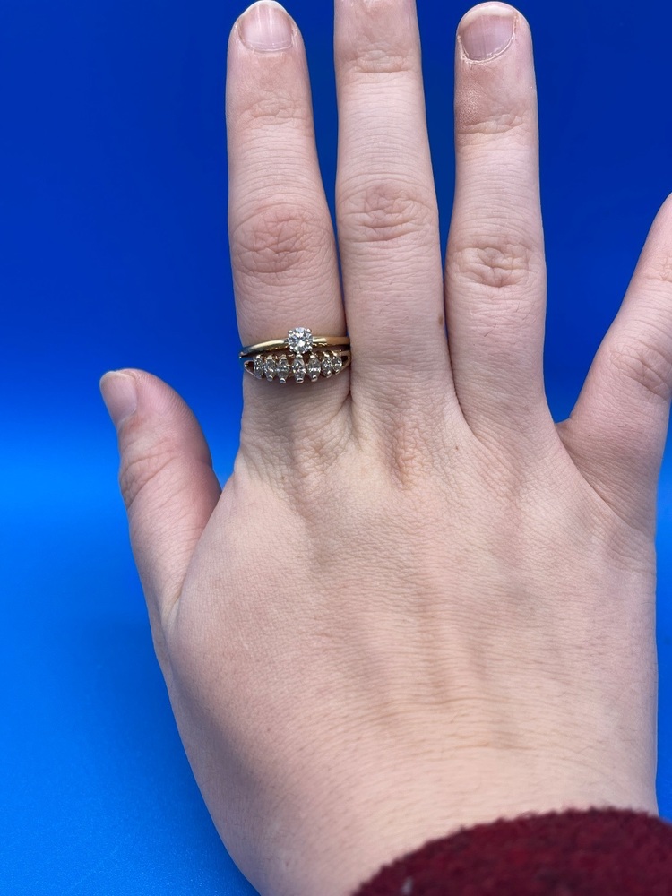 LAST CHANCE: This gorgeous stack is 14 kt Yellow Gold in a size 6. (Resizing Available) This beauty would make a stunning wedding stack or just a statement stack of its own. Don't miss out on this one!